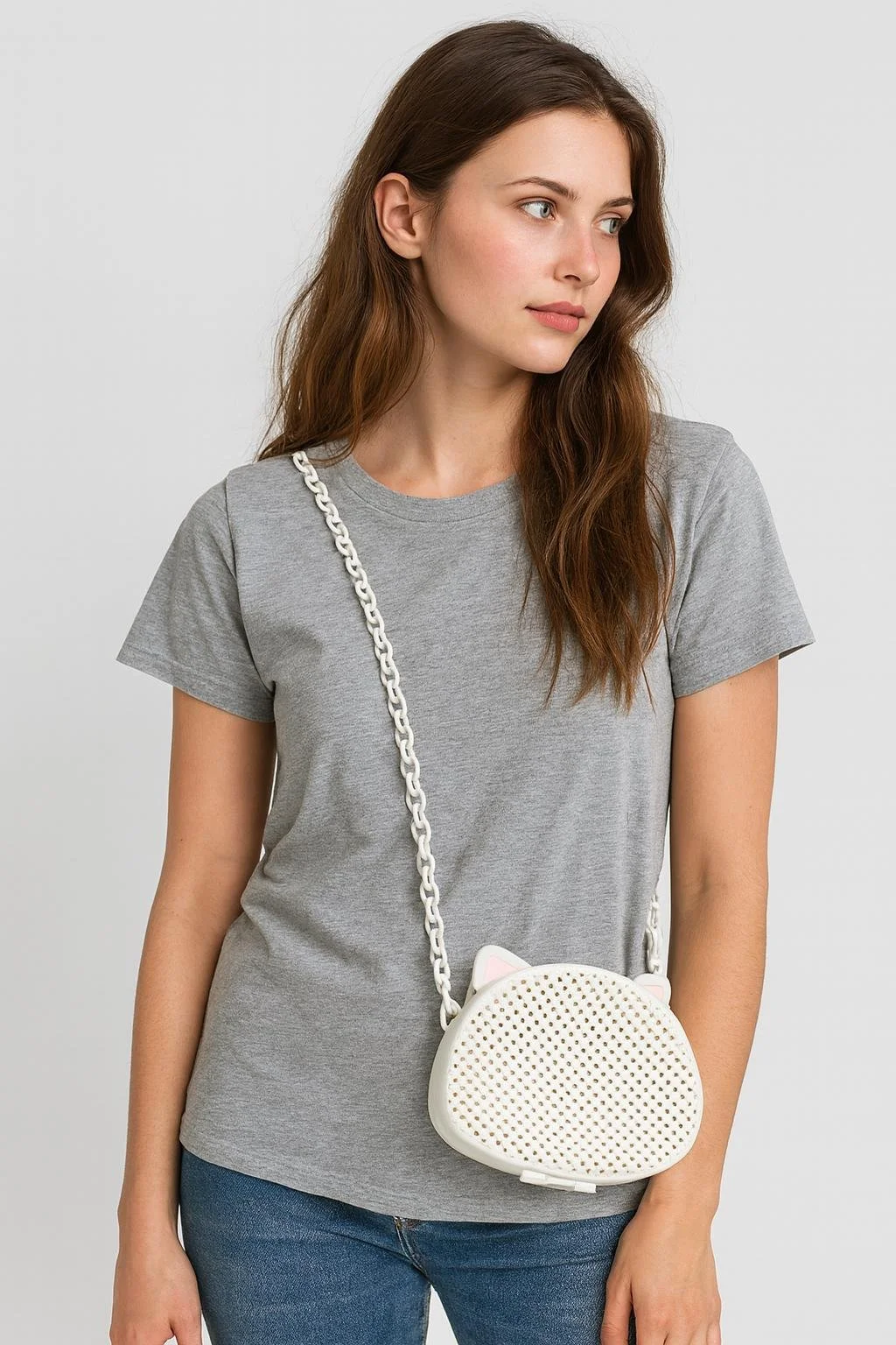 3D Printed Cat Purse | Honeycomb Mesh, Chain Strap Crossbody