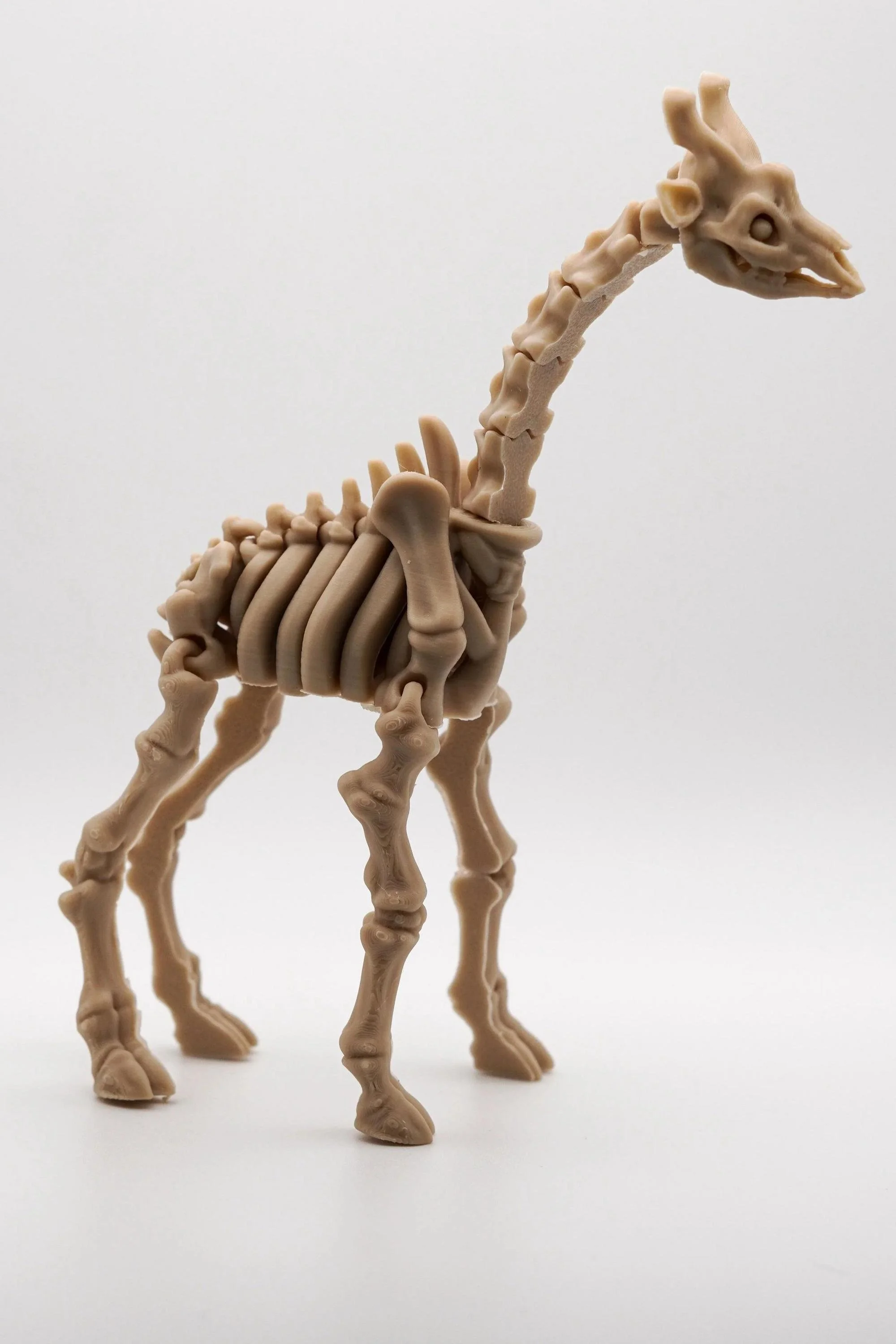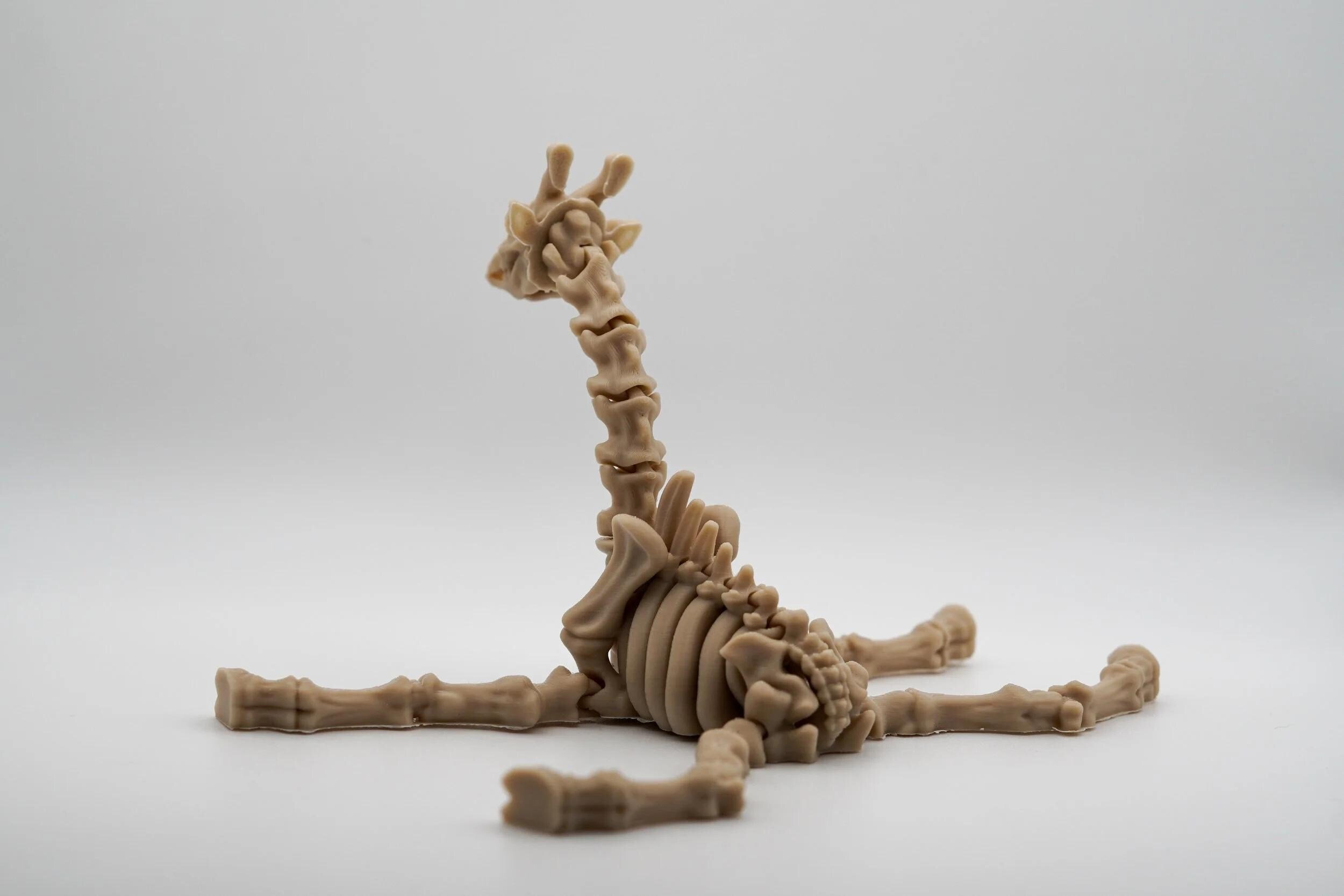 A skeletal giant brought back to life—this giraffe skeleton 3D-printed model is a mesmerizing fusion of nature and art. With its elongated vertebrae, intricate bone structure, and eerie realism, this piece captures the majestic essence of the tallest land animal in a hauntingly beautiful form. Perfect for fossil enthusiasts, gothic decor lovers, and collectors of the strange and unusual, this skeletal giraffe makes a striking display piece.