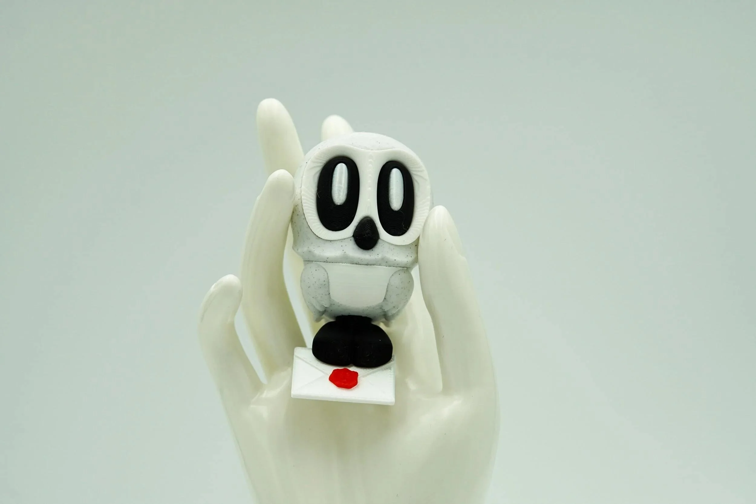 3D Printed Owl with Letter: Whimsical Fantasy Decor