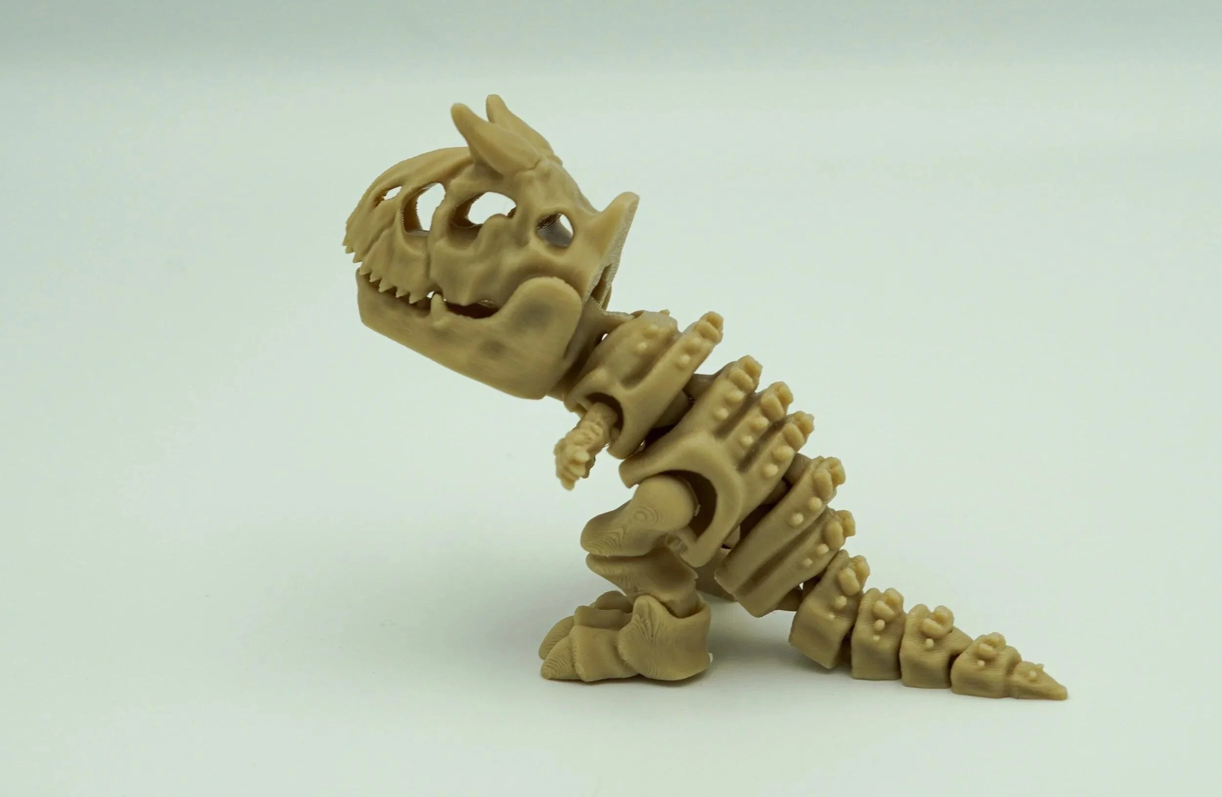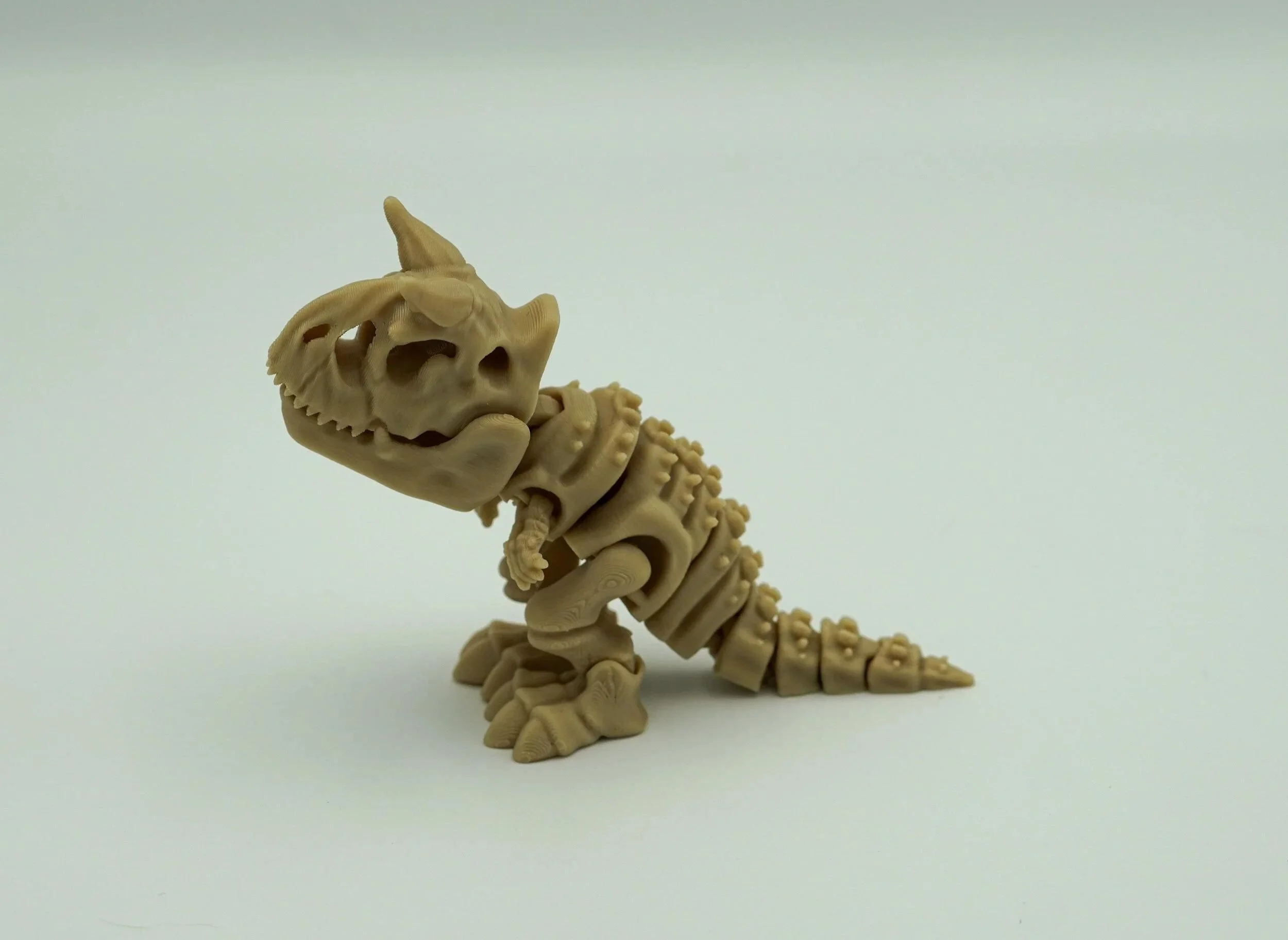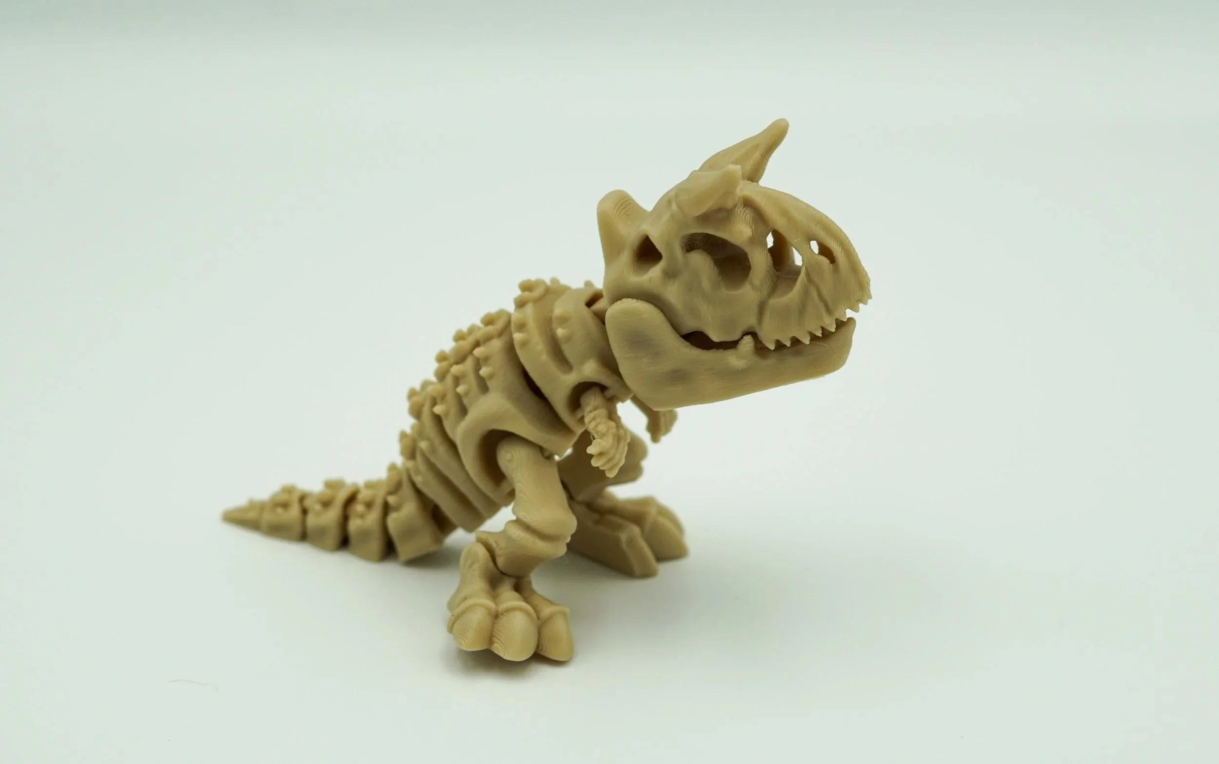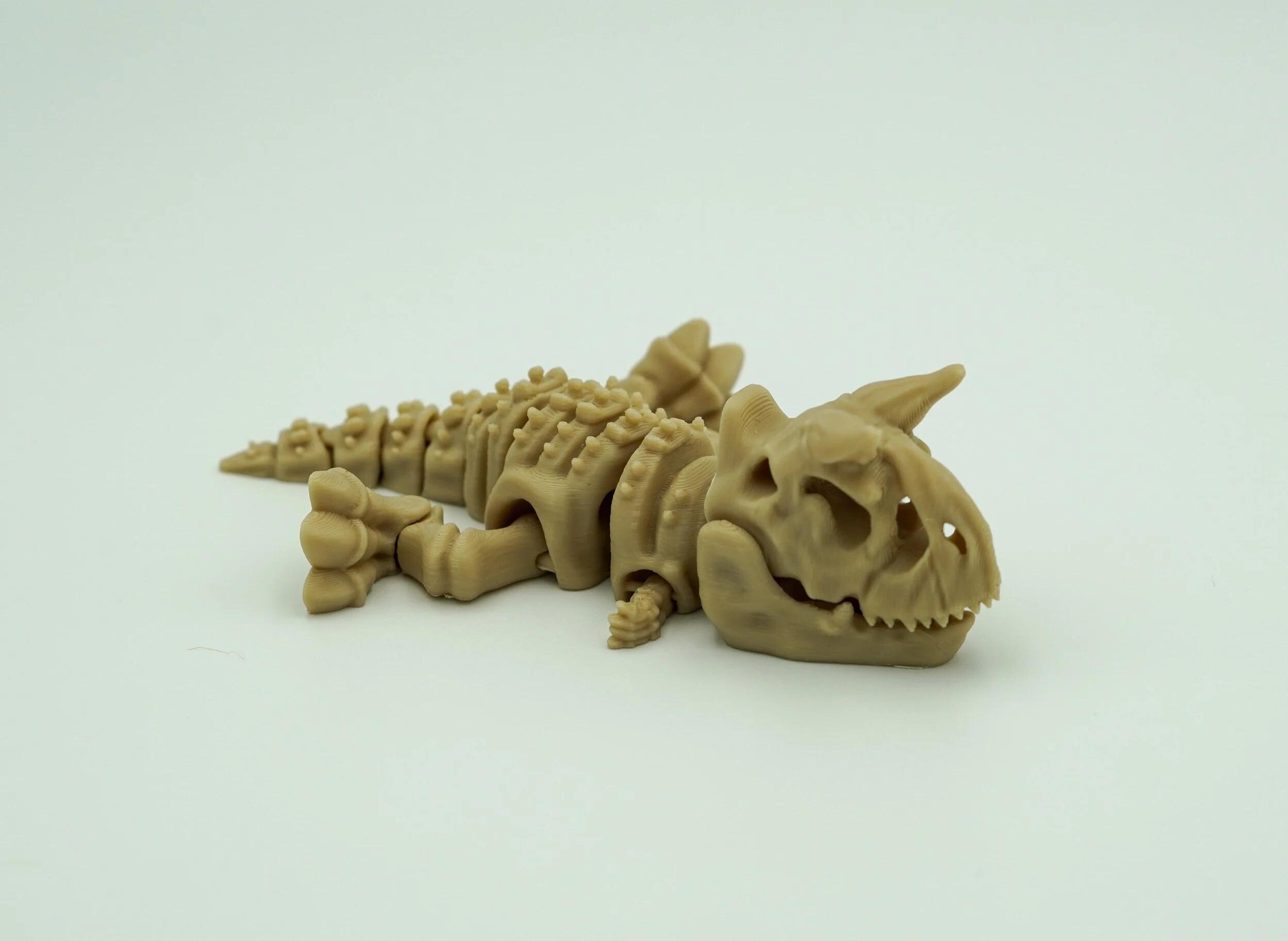 Roar back to the Cretaceous with this 3D Printed Articulated Carnotaurus Skeleton, a fun and flexible figure perfect for dinosaur lovers of all ages! With movable joints and a detailed fossil-style design, this miniature bone beast is equal parts toy, display piece, and conversation starter. ๐ฆ Features: ๐ Dino Skeleton Design โ Modeled after the horned Carnotaurus, complete with textured bone details and iconic features