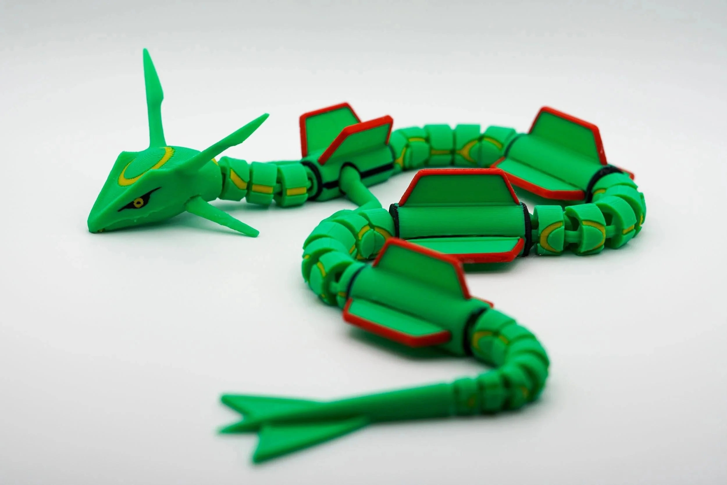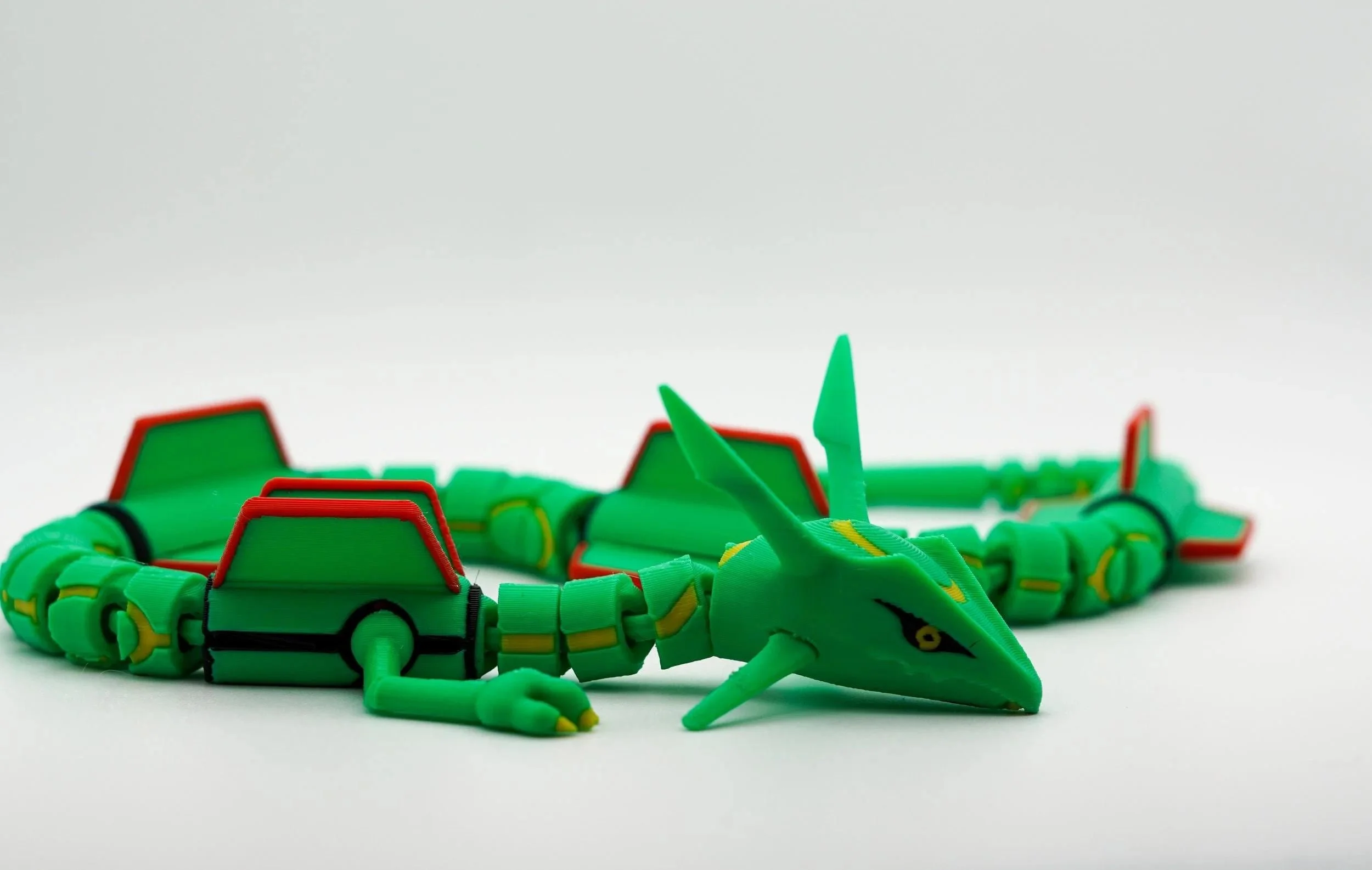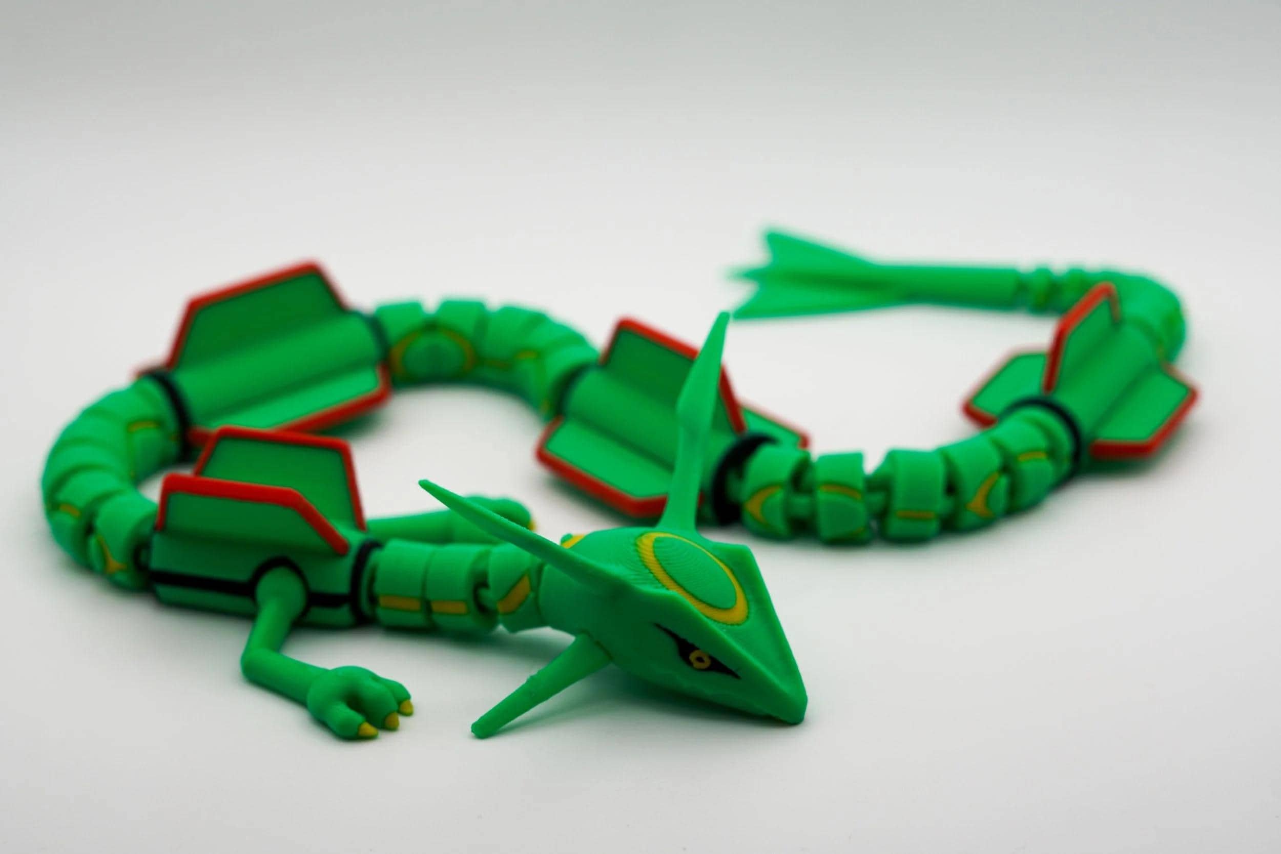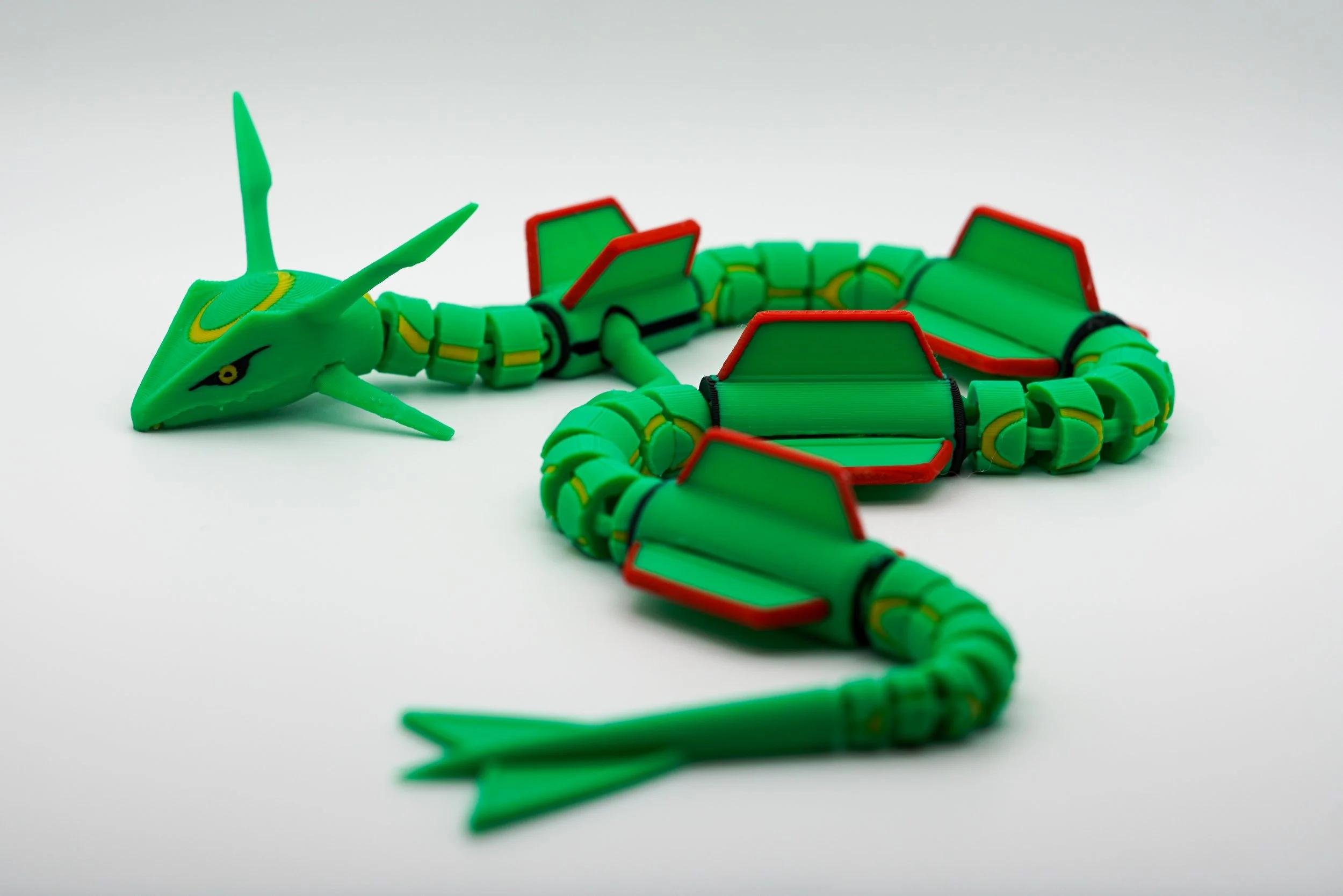 Ascend to legendary status with this articulated 3D-printed Rayquaza! Inspired by the powerful Dragon/Flying-type Pokémon, this stunning collectible captures the majestic presence of the Sky High Pokémon with intricate detailing, vibrant colors, and full articulation for dynamic posing. Take to the skies of Hoenn with this mighty Rayquaza and bring home the ultimate collectible for Pokémon fans and trainers alike! Designed by LM3D