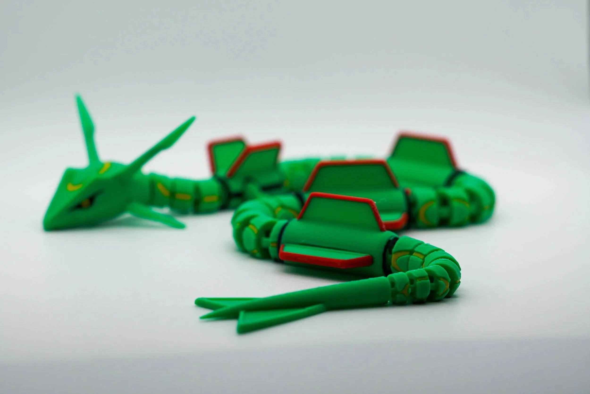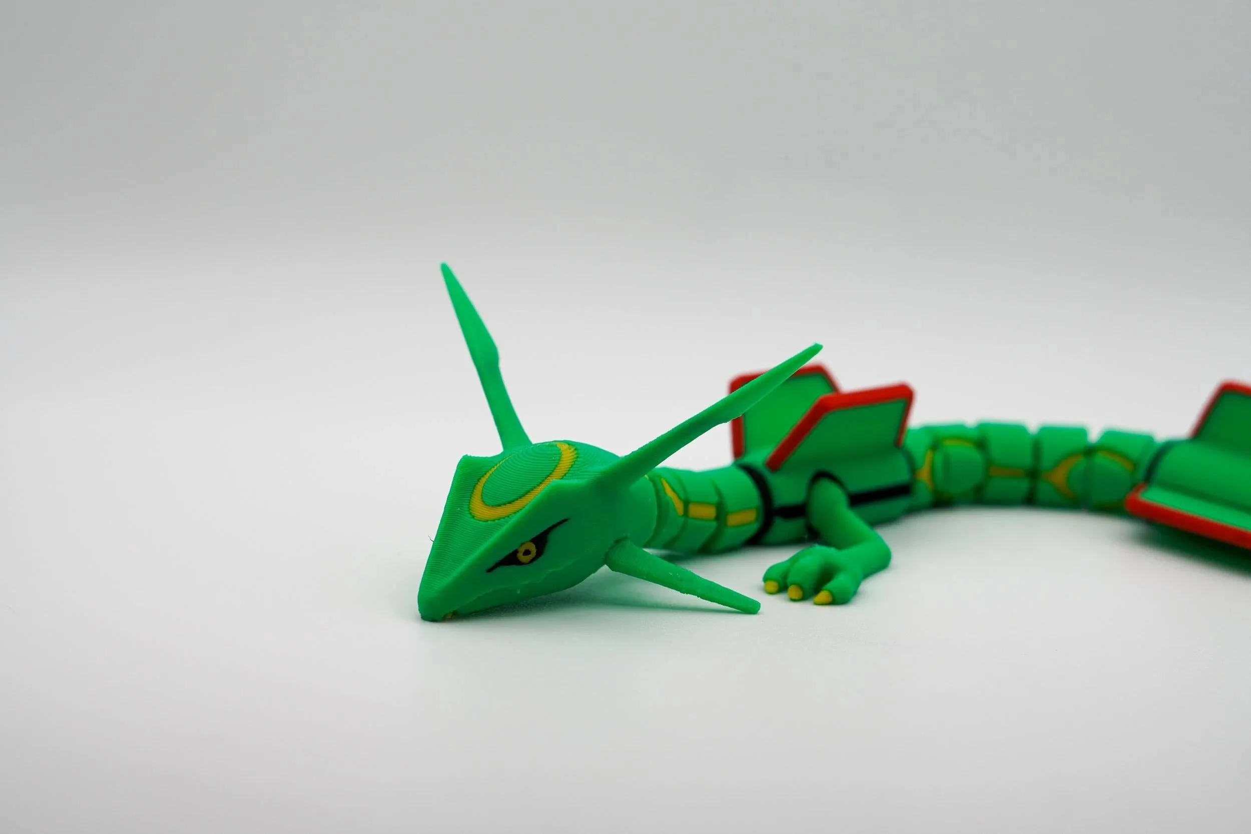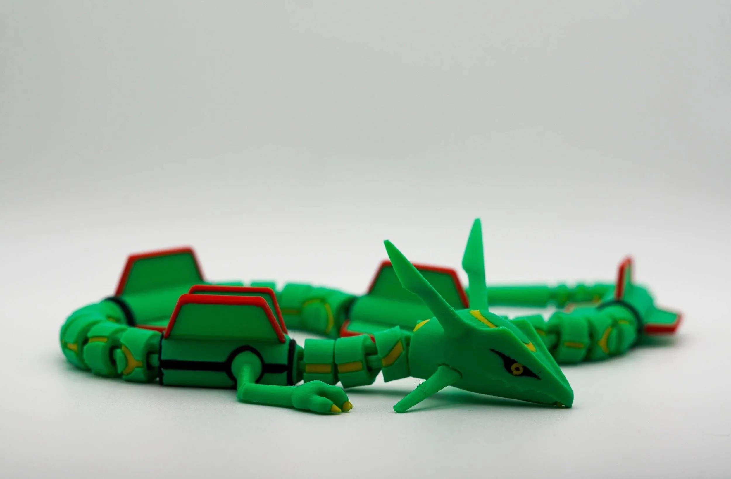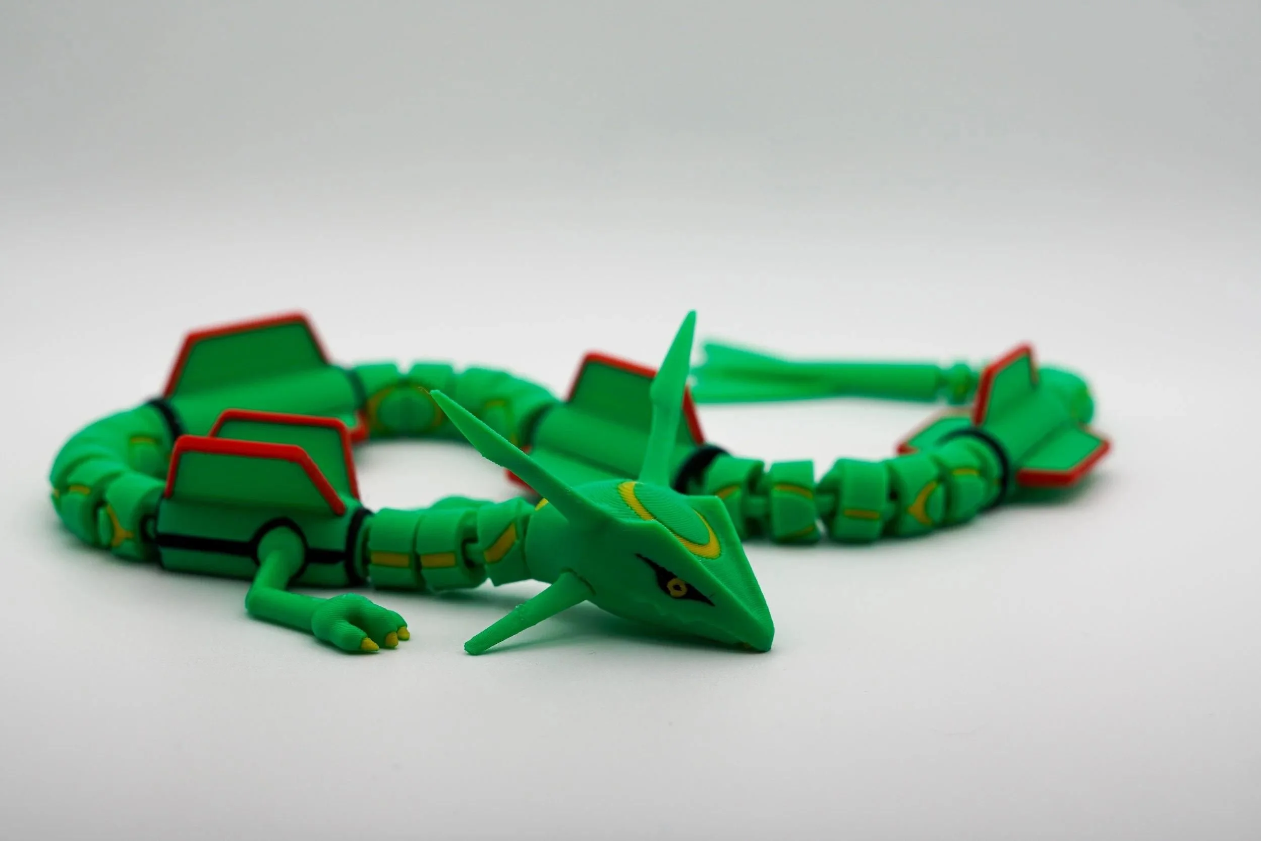 Ascend to legendary status with this articulated 3D-printed Rayquaza! Inspired by the powerful Dragon/Flying-type Pokémon, this stunning collectible captures the majestic presence of the Sky High Pokémon with intricate detailing, vibrant colors, and full articulation for dynamic posing. Take to the skies of Hoenn with this mighty Rayquaza and bring home the ultimate collectible for Pokémon fans and trainers alike! Designed by LM3D