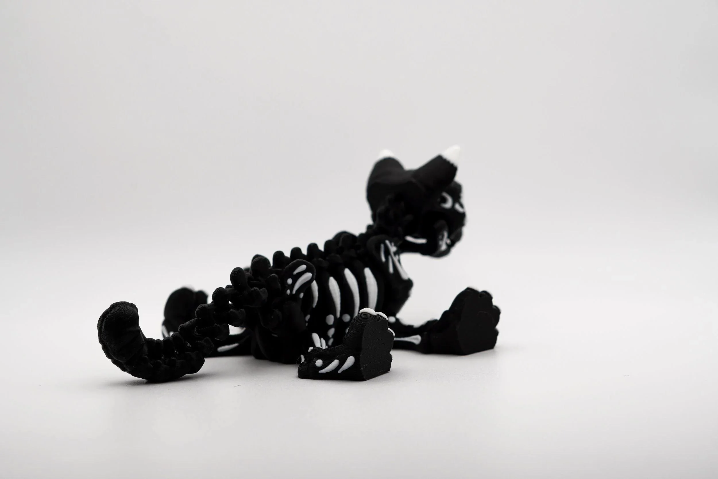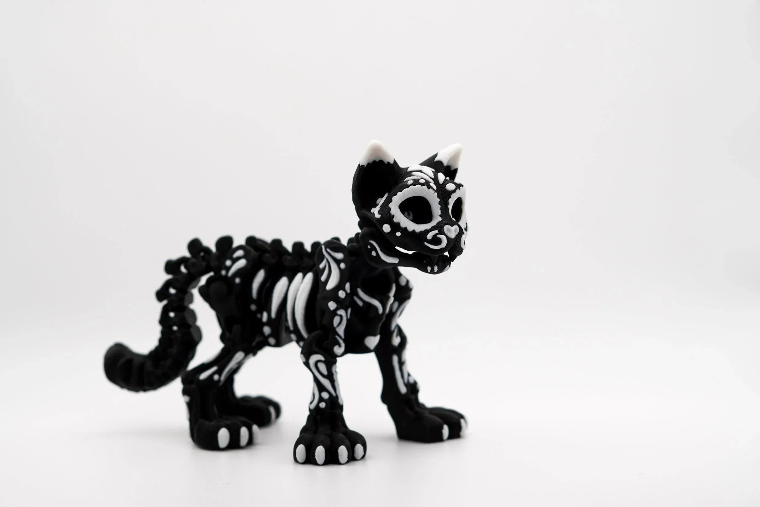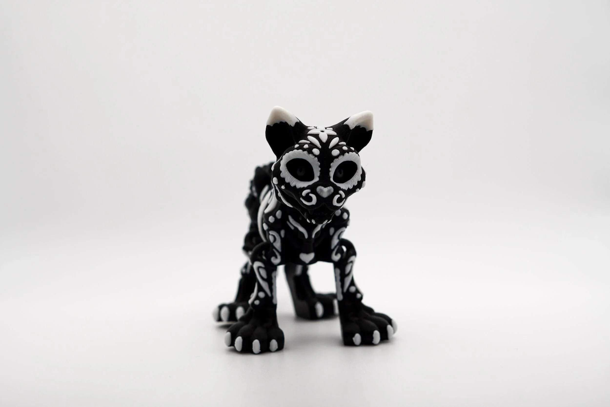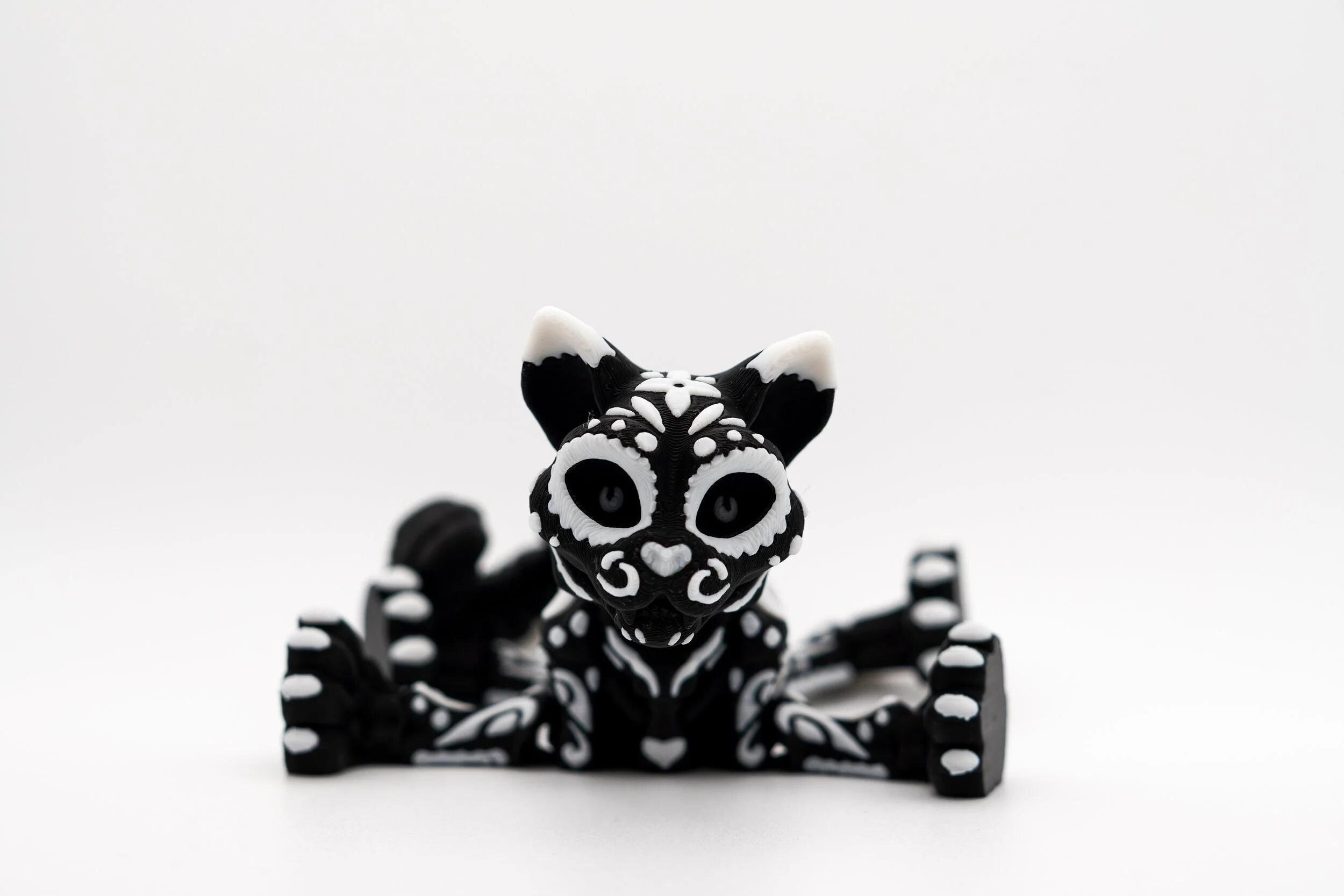 Embrace the mystical charm of the Sugar Skull Cat, a beautifully 3D-printed creation inspired by Día de los Muertos (Day of the Dead) art. With its intricate bone-like patterns, striking black-and-white contrast, and delicate heart details, this feline is a perfect blend of spooky and elegant. This unique design is ideal for collectors, Halloween lovers, and those who adore gothic aesthetics. Whether displayed as a decorative piece, a gift, or part of a themed collection, this cat is sure to captivate attention. Add a Sugar Skull Cat to your collection today and bring home a touch of dark magic and feline grace!