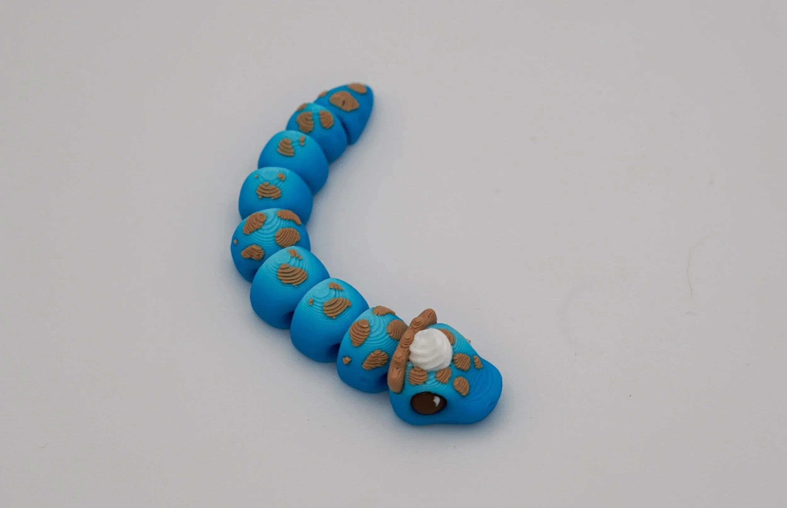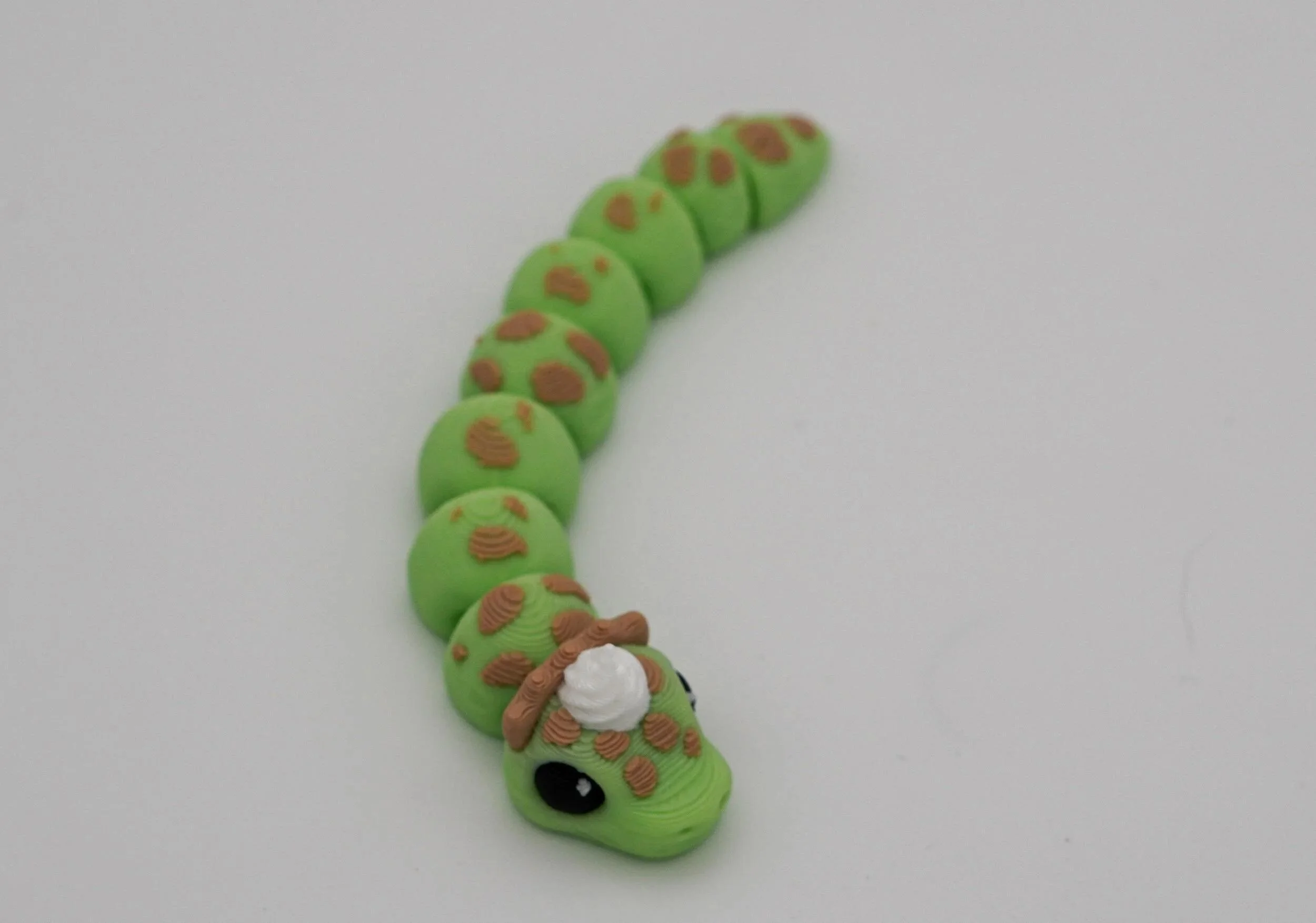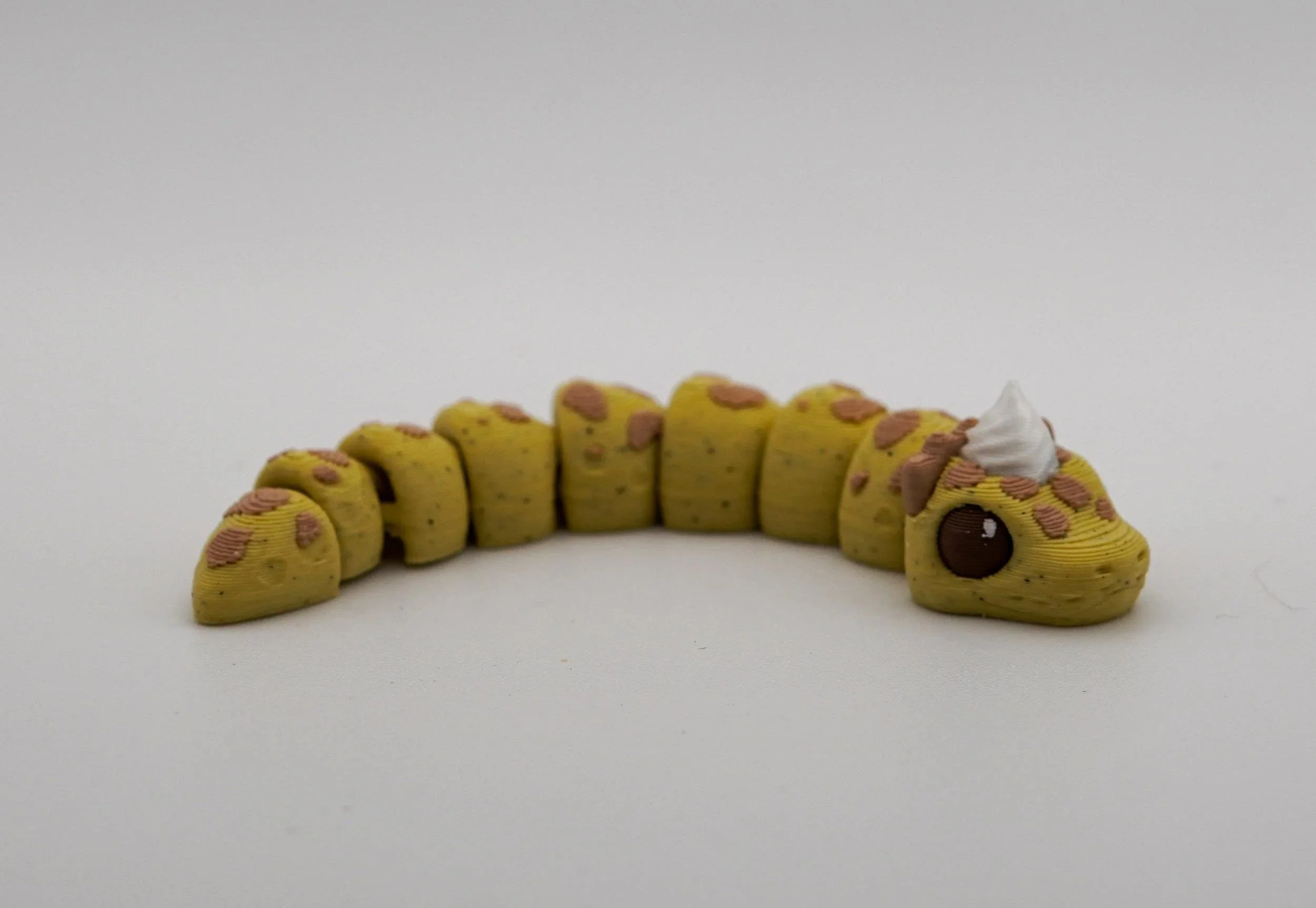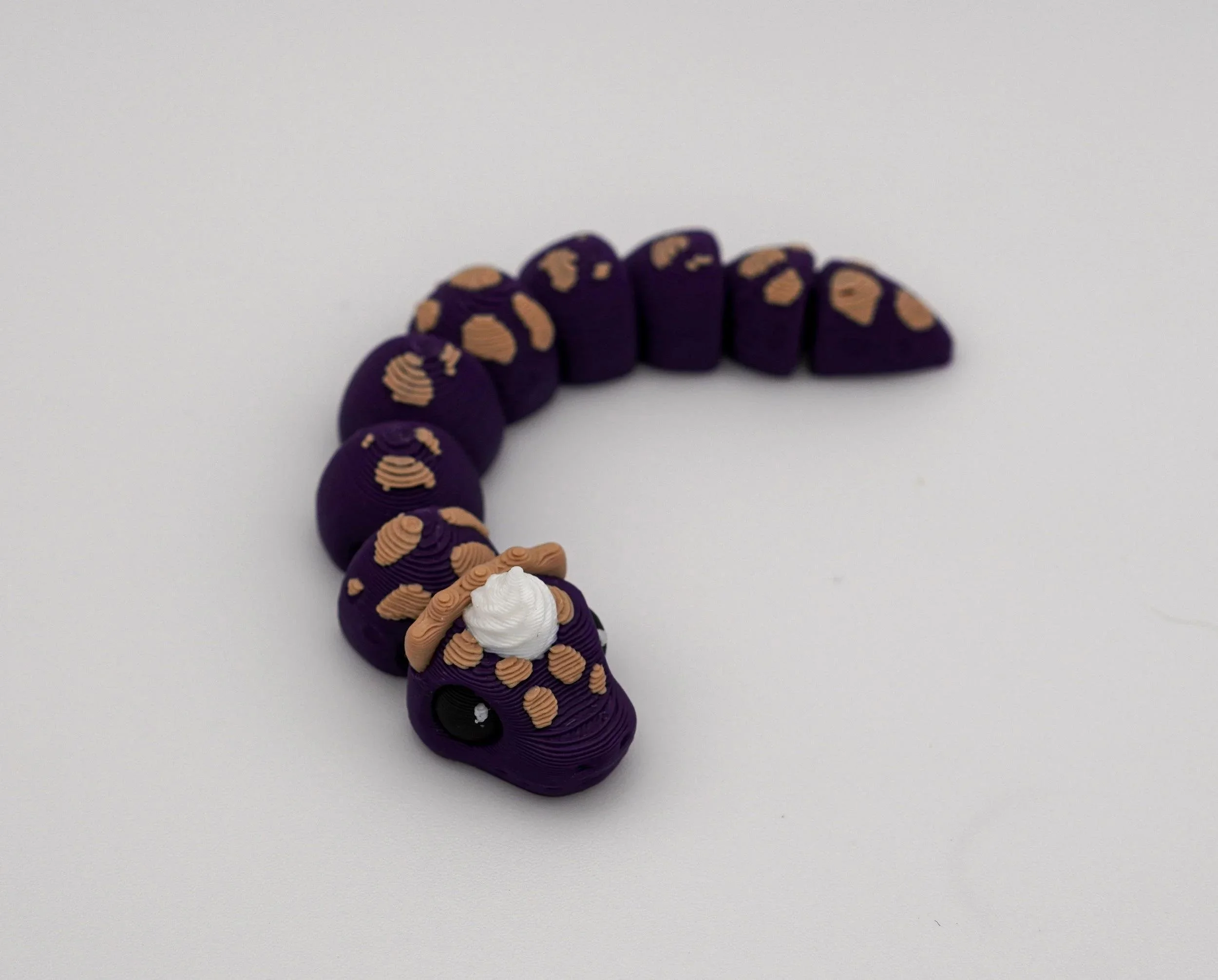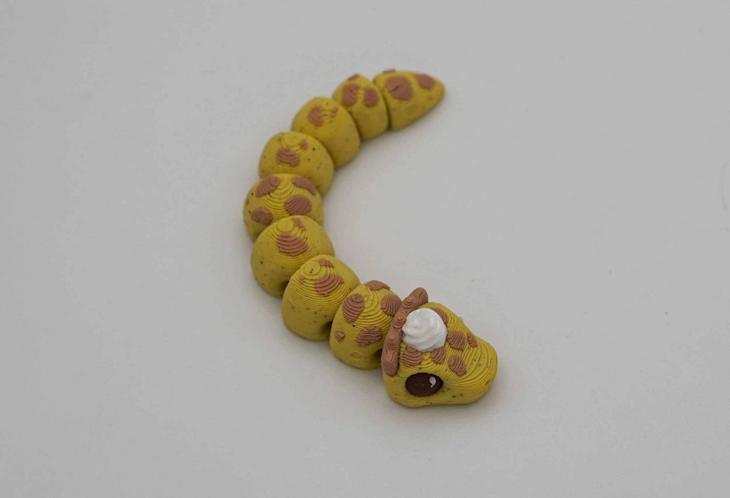 A delightful collection of handcrafted PIEthons—adorable, pie-themed snake figurines with a whimsical touch! Each PIEthon features a unique blend of vibrant colors and pie-inspired details, complete with a cute dollop of whipped cream on their heads. Designed by SugarPaws3D