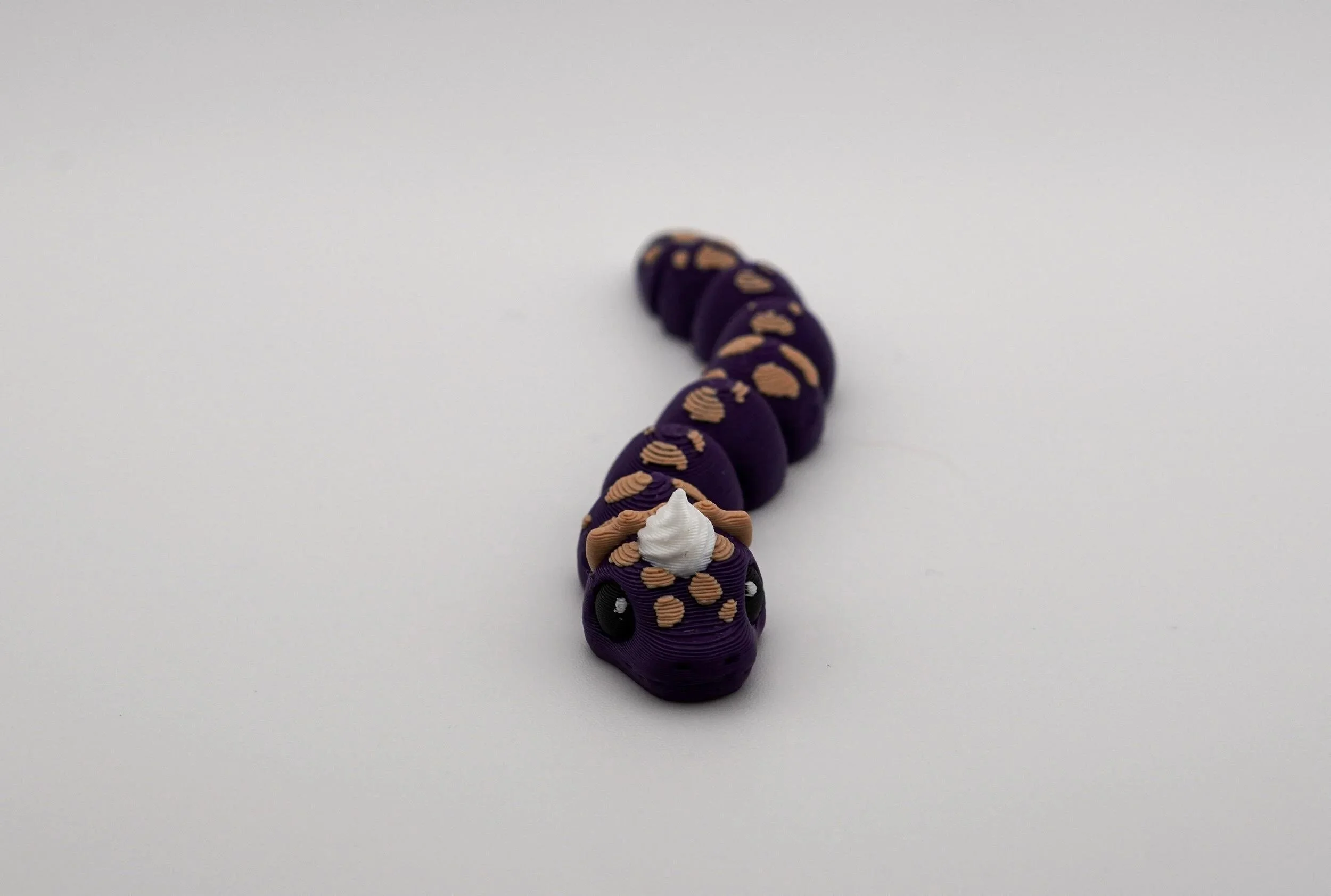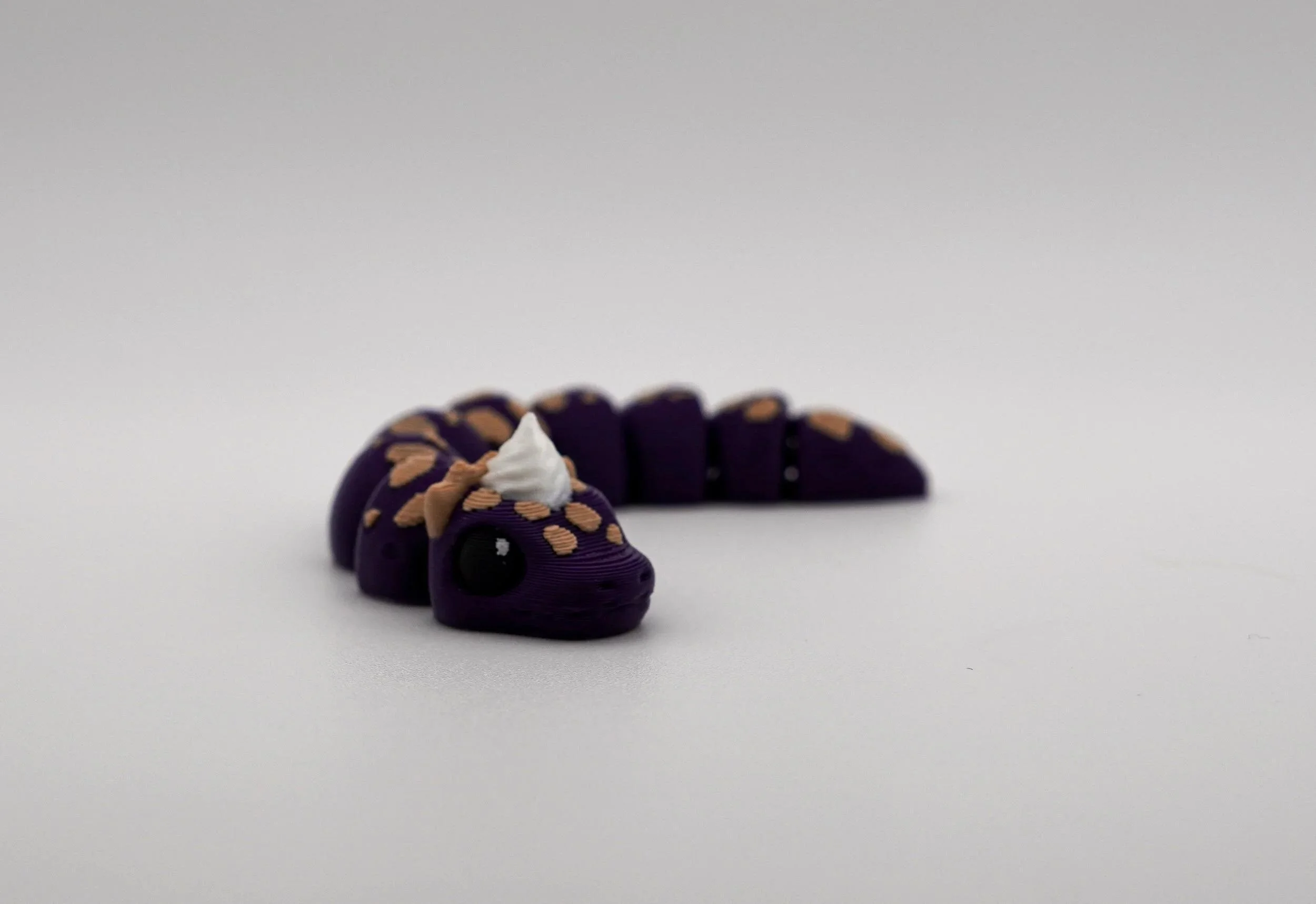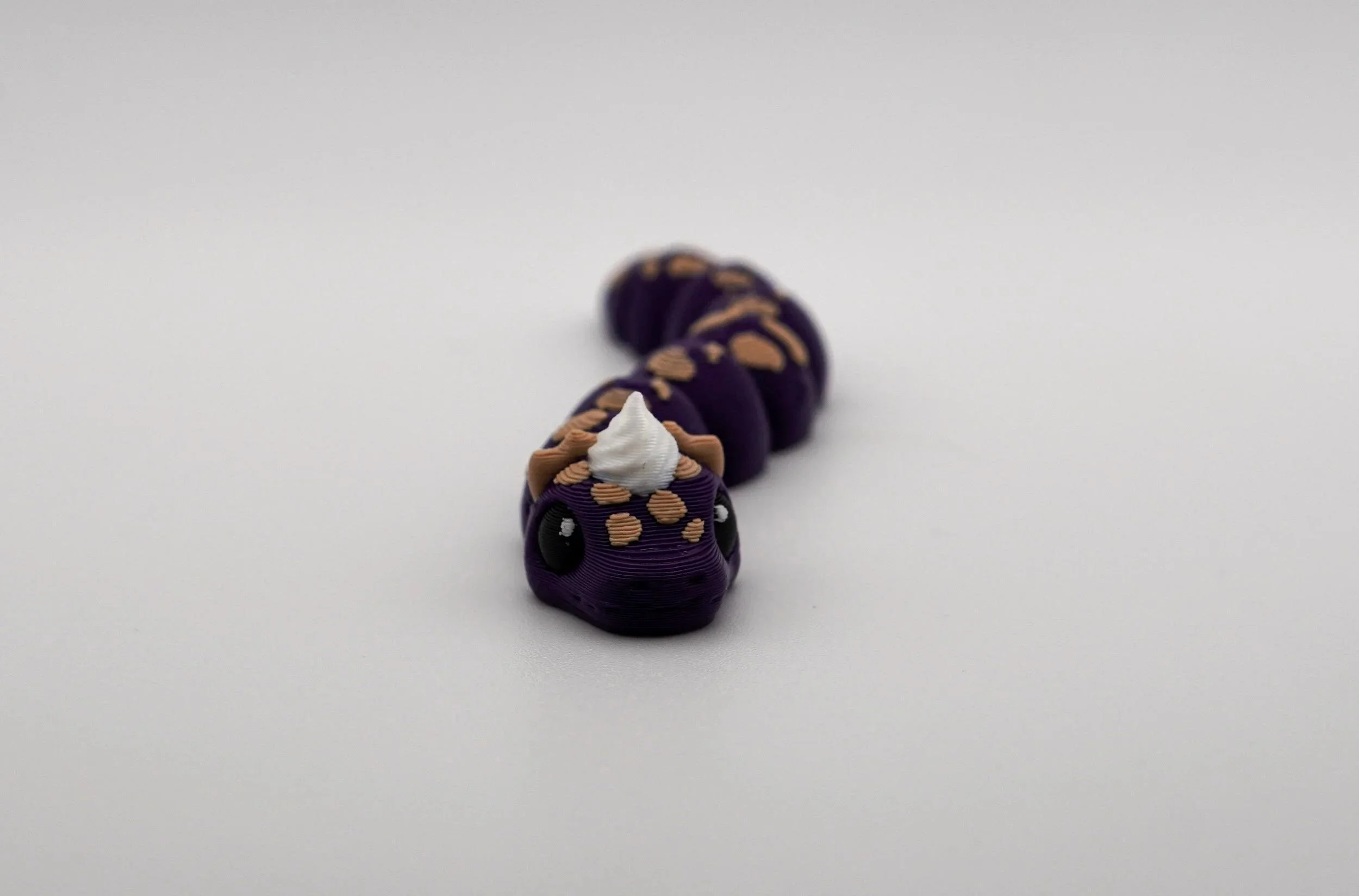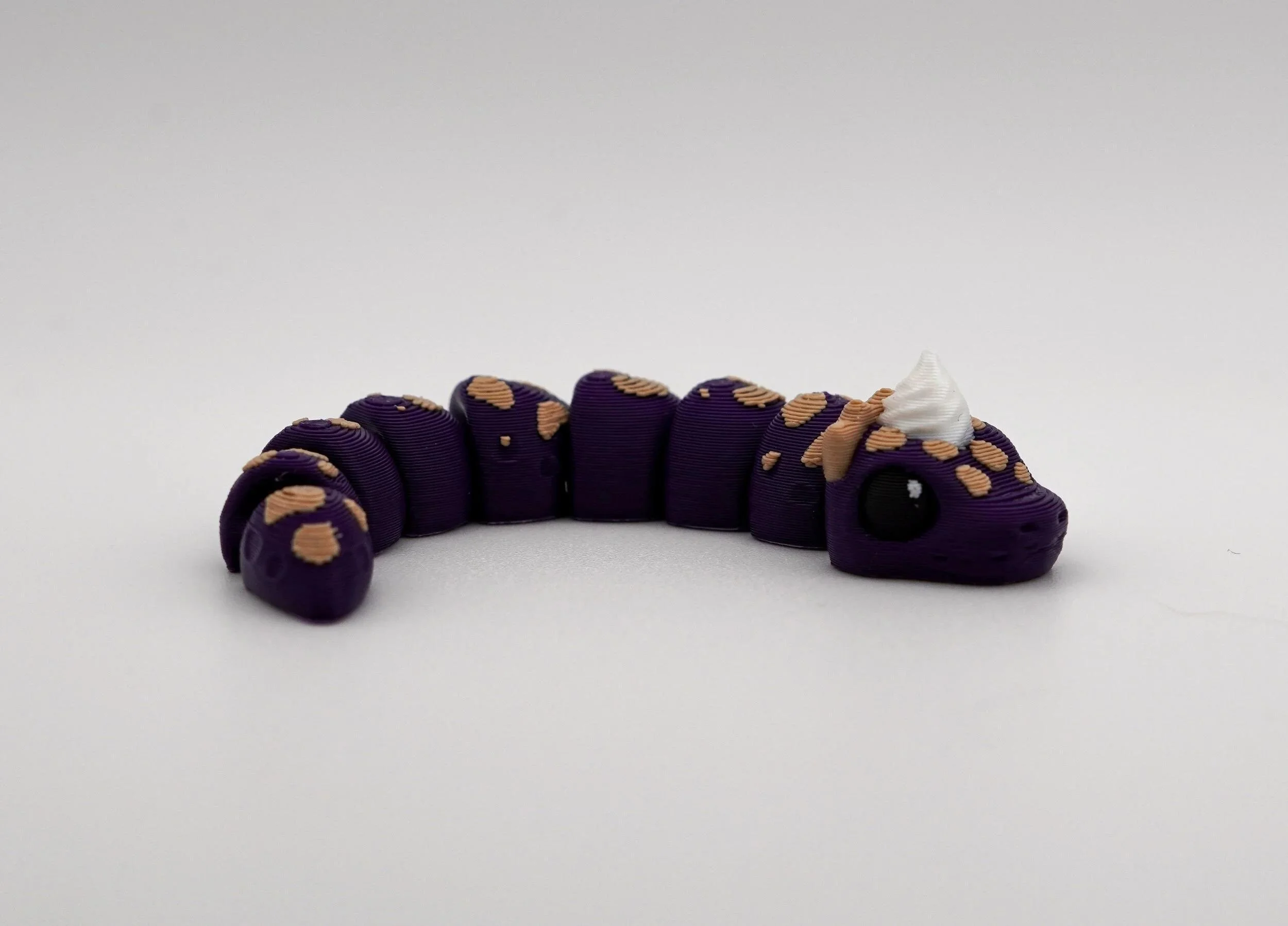 A delightful collection of handcrafted PIEthons—adorable, pie-themed snake figurines with a whimsical touch! Each PIEthon features a unique blend of vibrant colors and pie-inspired details, complete with a cute dollop of whipped cream on their heads. Designed by SugarPaws3D