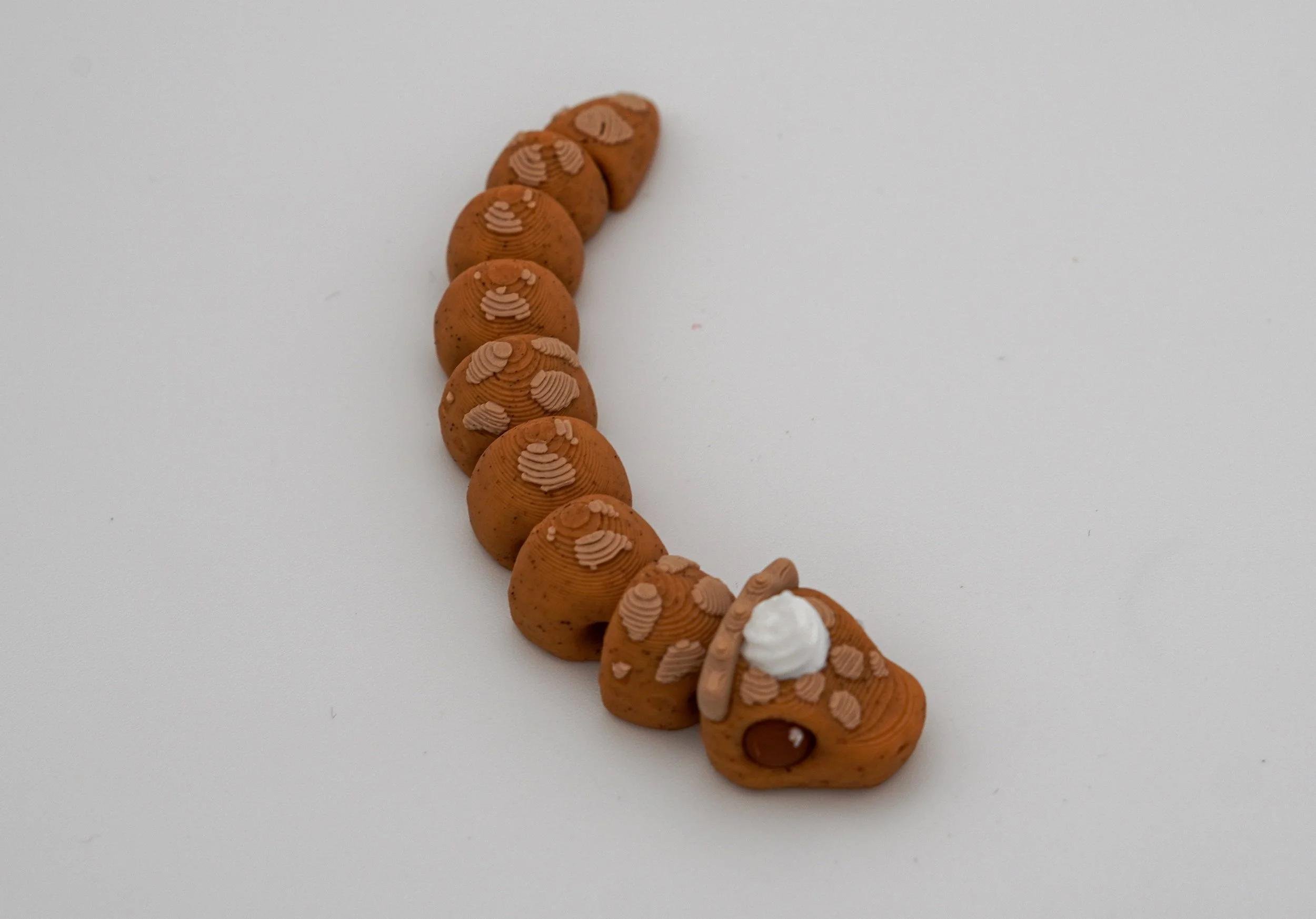Handcrafted PIEthon Figurine: Pie-Themed Snake by SugarPaws3D