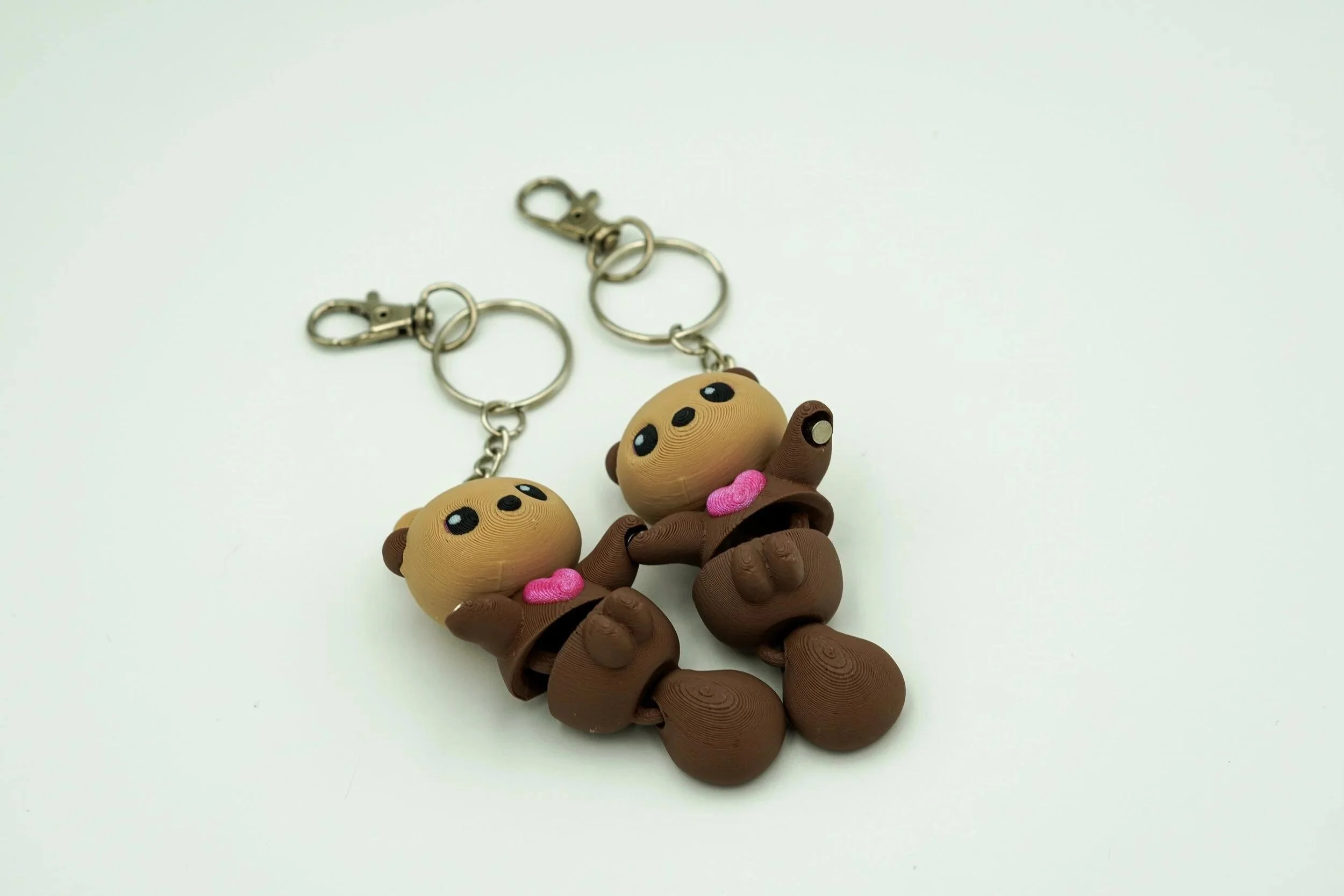 Keep your hearts connected with this charming Otter Couple Keychain Set, featuring two snuggly otters holding hands with love in their eyes and hearts on their chests. These 3D printed companions make the perfect gift for couples, besties, or anyone who wants to carry a little love wherever they go. 🦦 Features: 💕 Adorable Matching Pair – Two articulated otters, each with a cute pink heart and jointed limbs