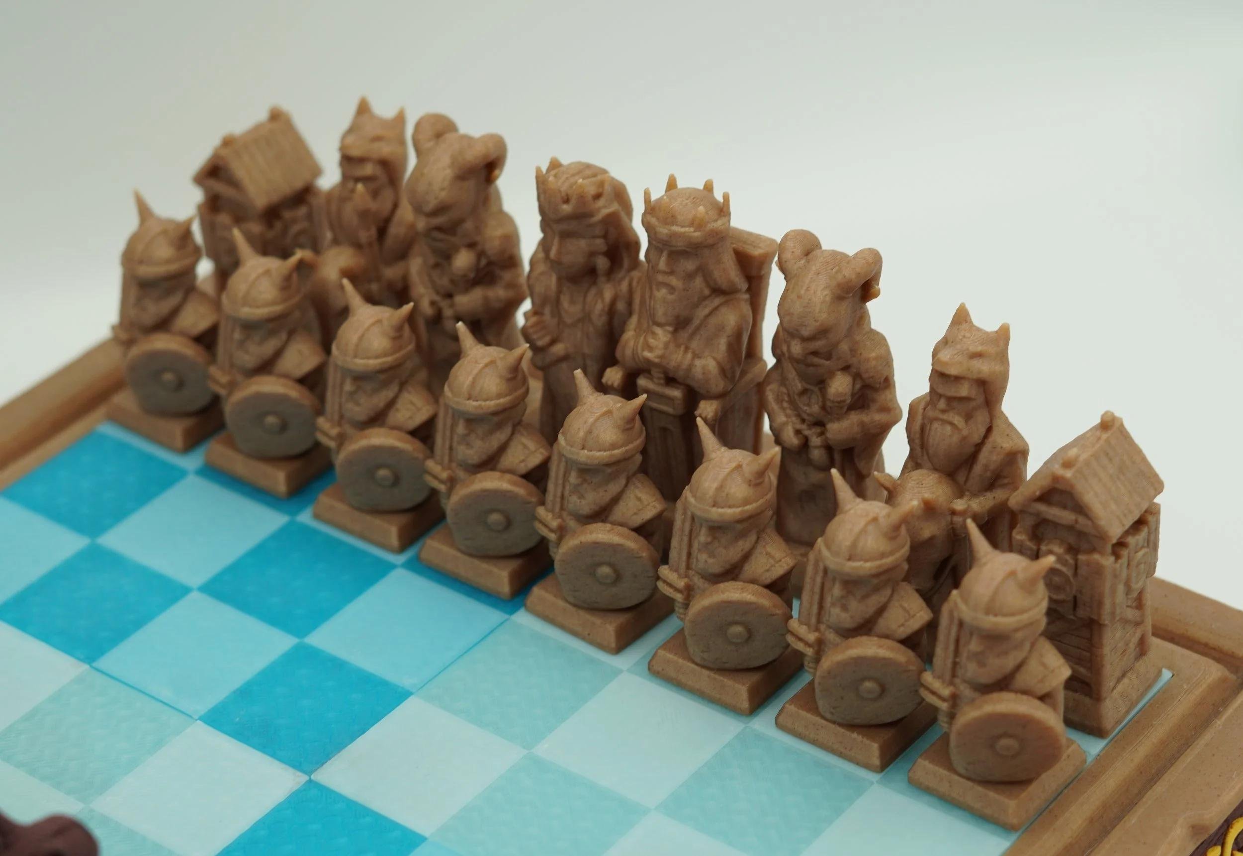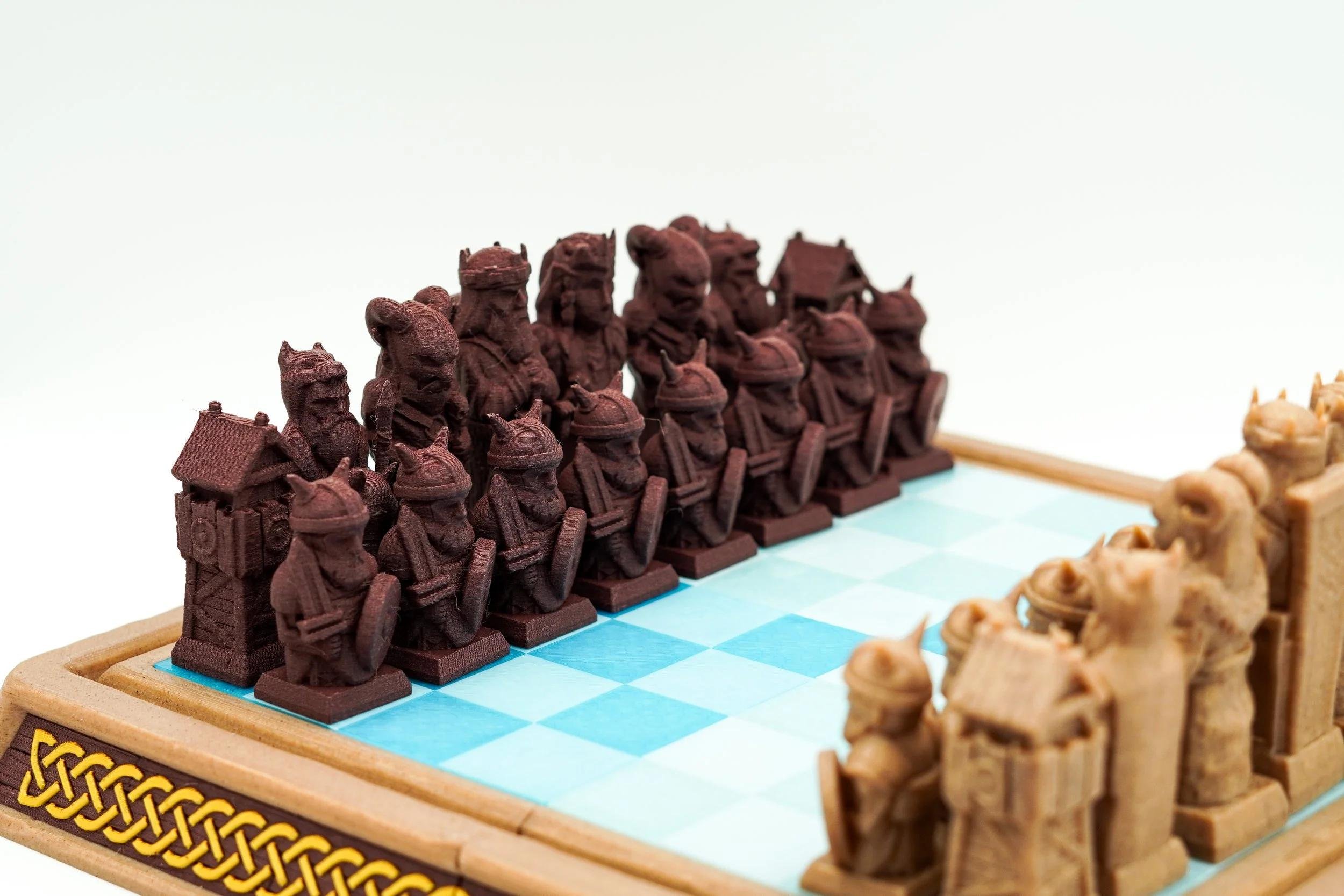 Viking-Themed 3D Printed Chess Set – Norse Legends Come to Play Bring epic battles to the chessboard with this Viking-Themed 3D Printed Chess Set, where ancient Norse warriors clash in a strategic game of wits. Each piece is intricately designed to represent legendary Viking figures—complete with horned helmets, shields, and detailed armor—making every move feel like part of a saga. ✨ Features: ⚔️ Unique Character Designs – Distinct, stylized Viking warriors for each side